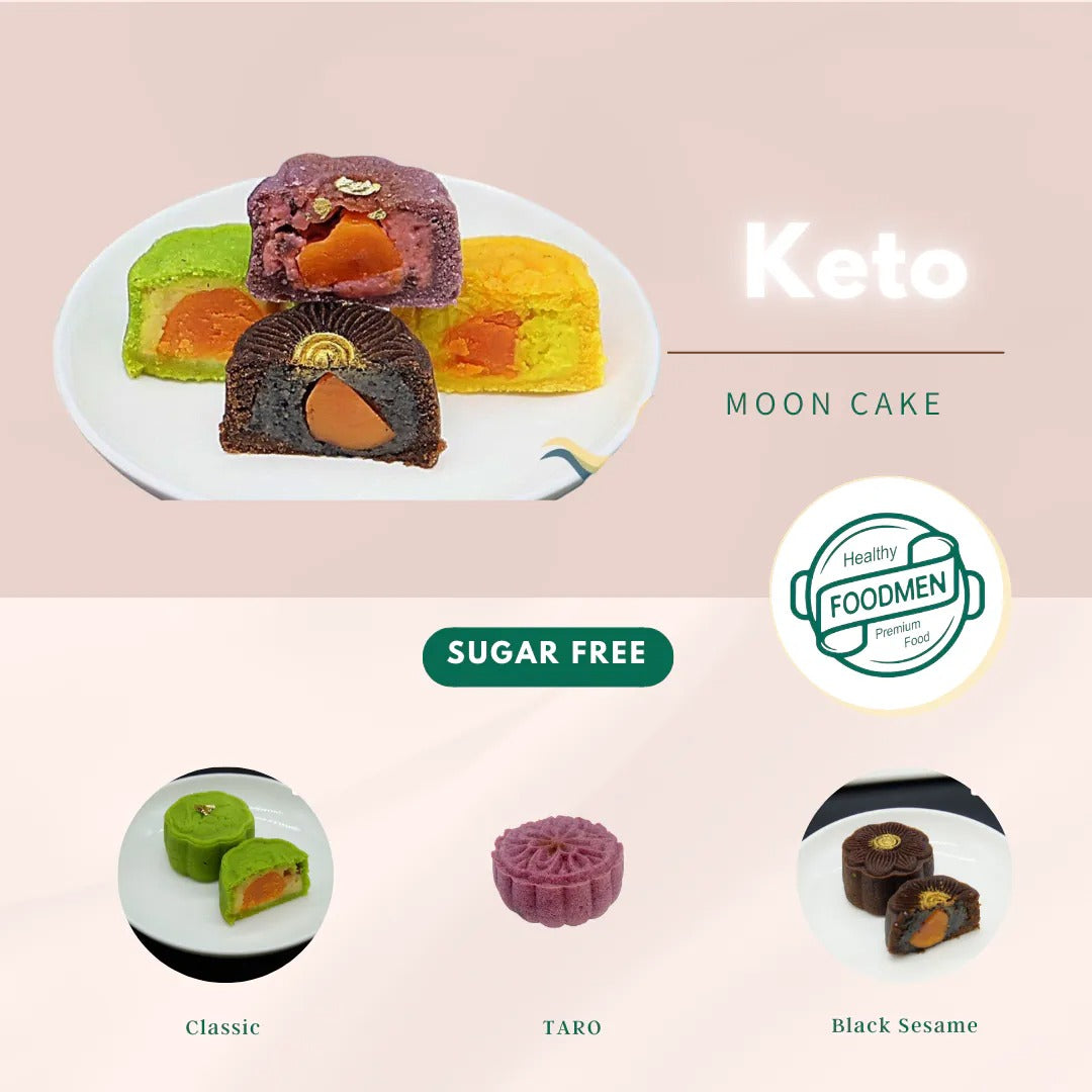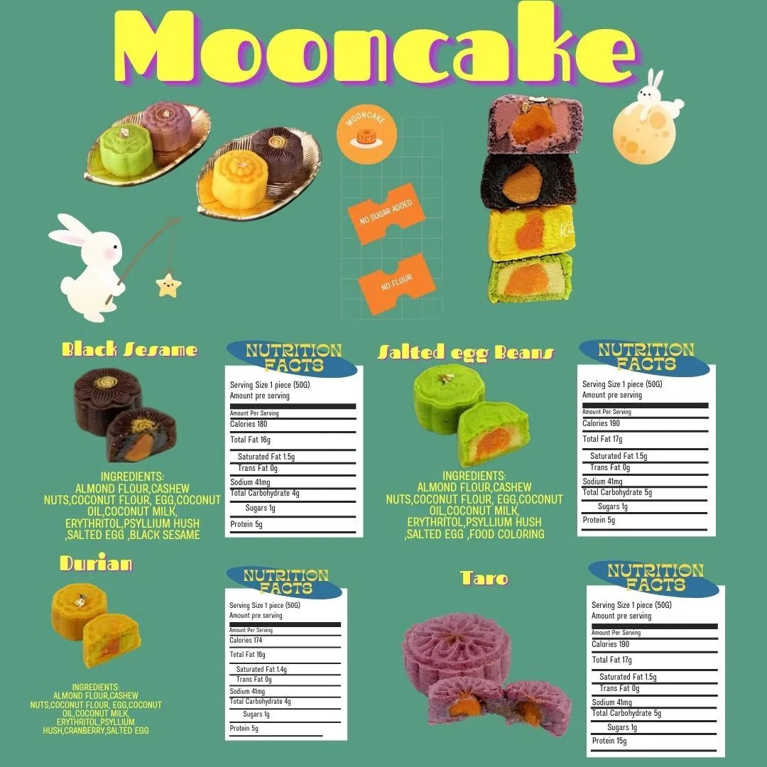 🥮 「生酮月餅」4款招牌口味,完美口感,精選頂級食材,注重每一個細節。採用特製杏仁粉配方,甜而不膩,香氣柔和,無小麥粉、無糖,100%生酮配方。