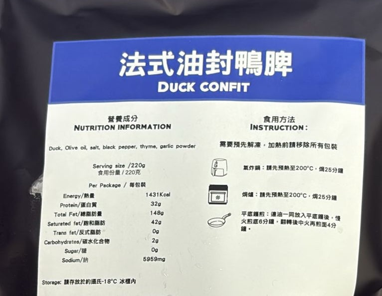 法式油封鴨髀(1隻) 220g 『香港製造』