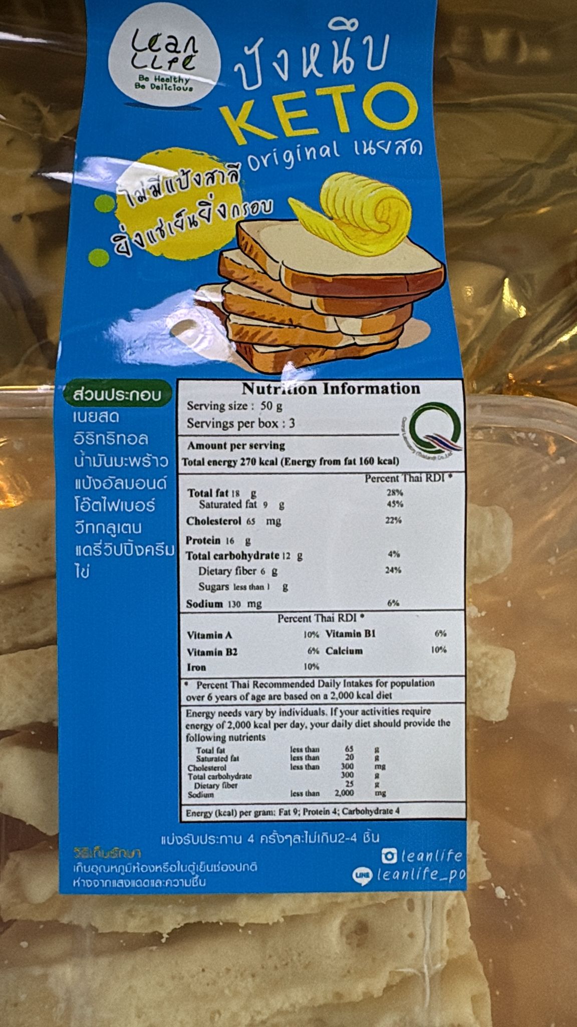 Main Ingredients: Almond Flour, Coconut Flour, Vital Wheat gluten, Oat Fiber ,Almond Milk, MonkFruit , Erythritol , whipping cream Butter, Egg, Xanthan gum,Organic vegetable-fruit powder, salt