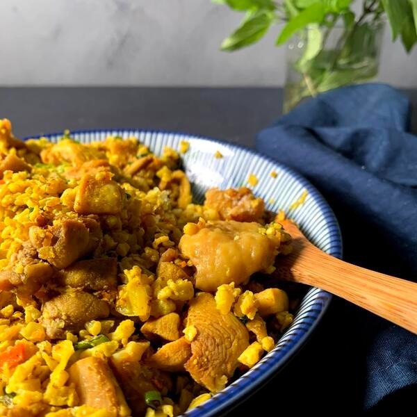 薑黃雞腿肉蛋花椰菜飯