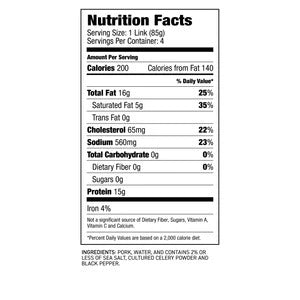 12 ounces4 fully cooked sausage linksNatural casingKeep refrigerated
