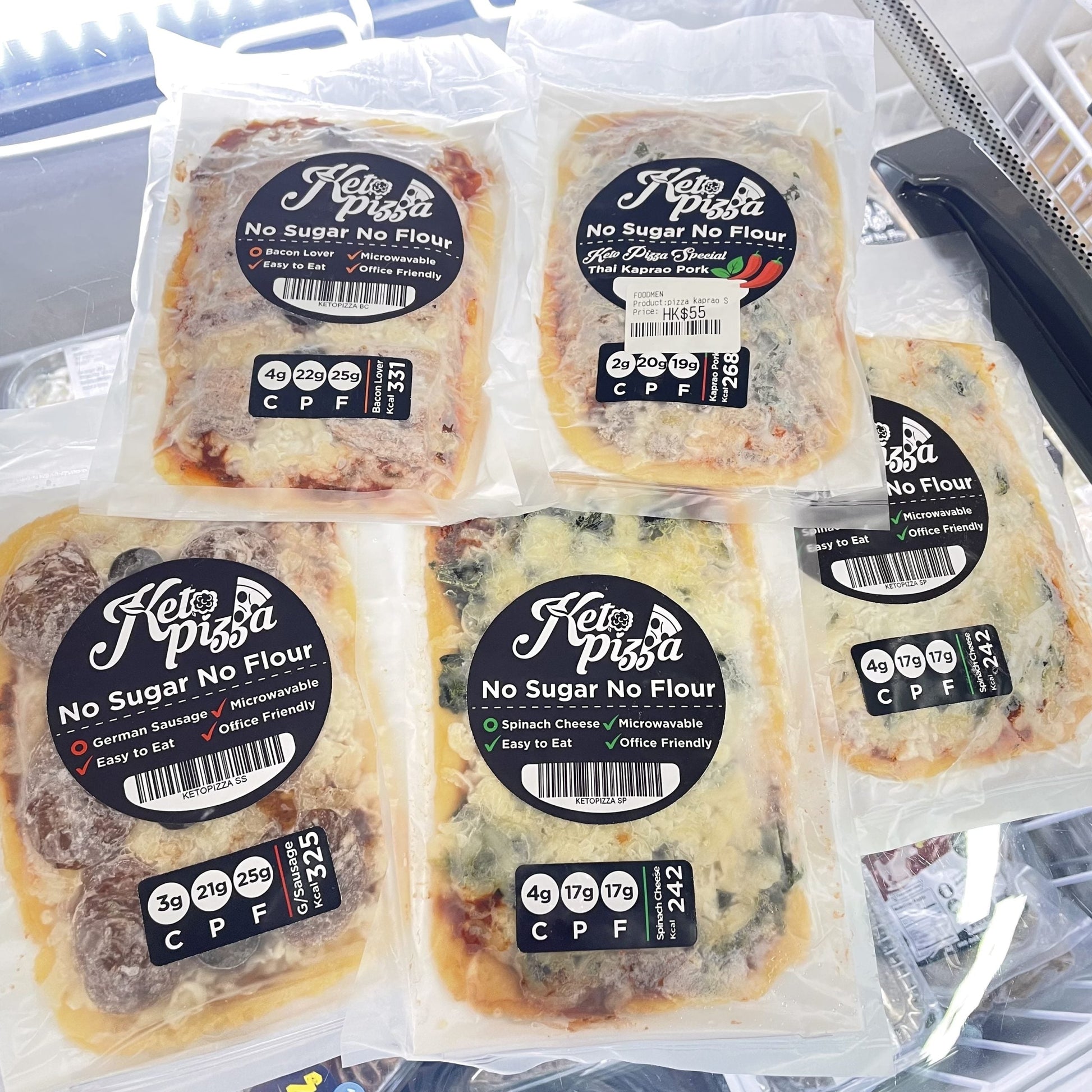 Dough made from Almond Flour, Egg, Flaxseed and Mozzarella Cheese. Topping with selected tomato puree no flour no sugar added and Double the amount of Mozzarella Cheese.