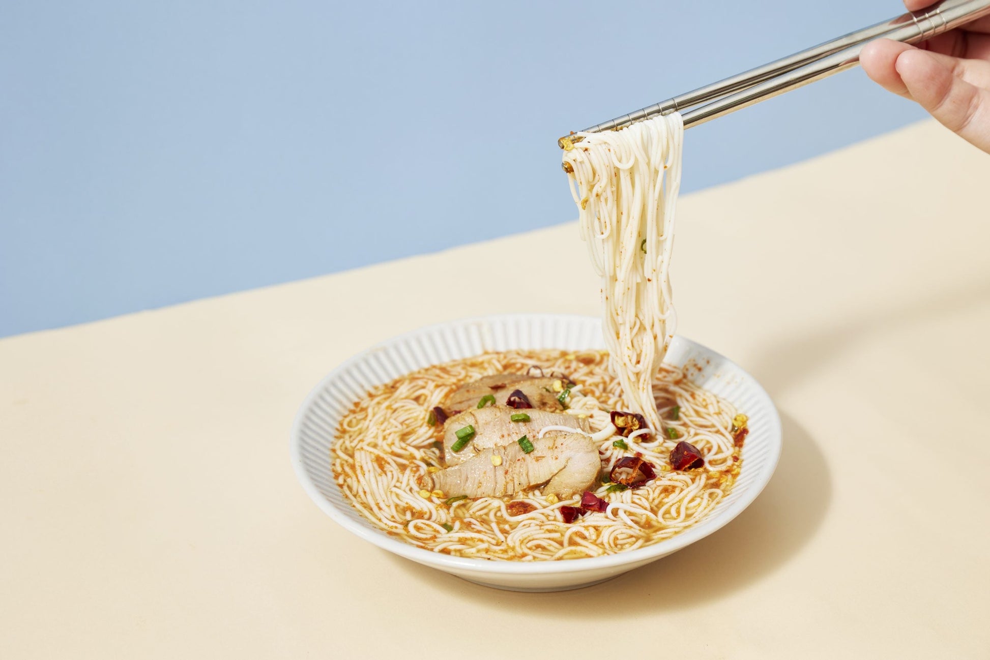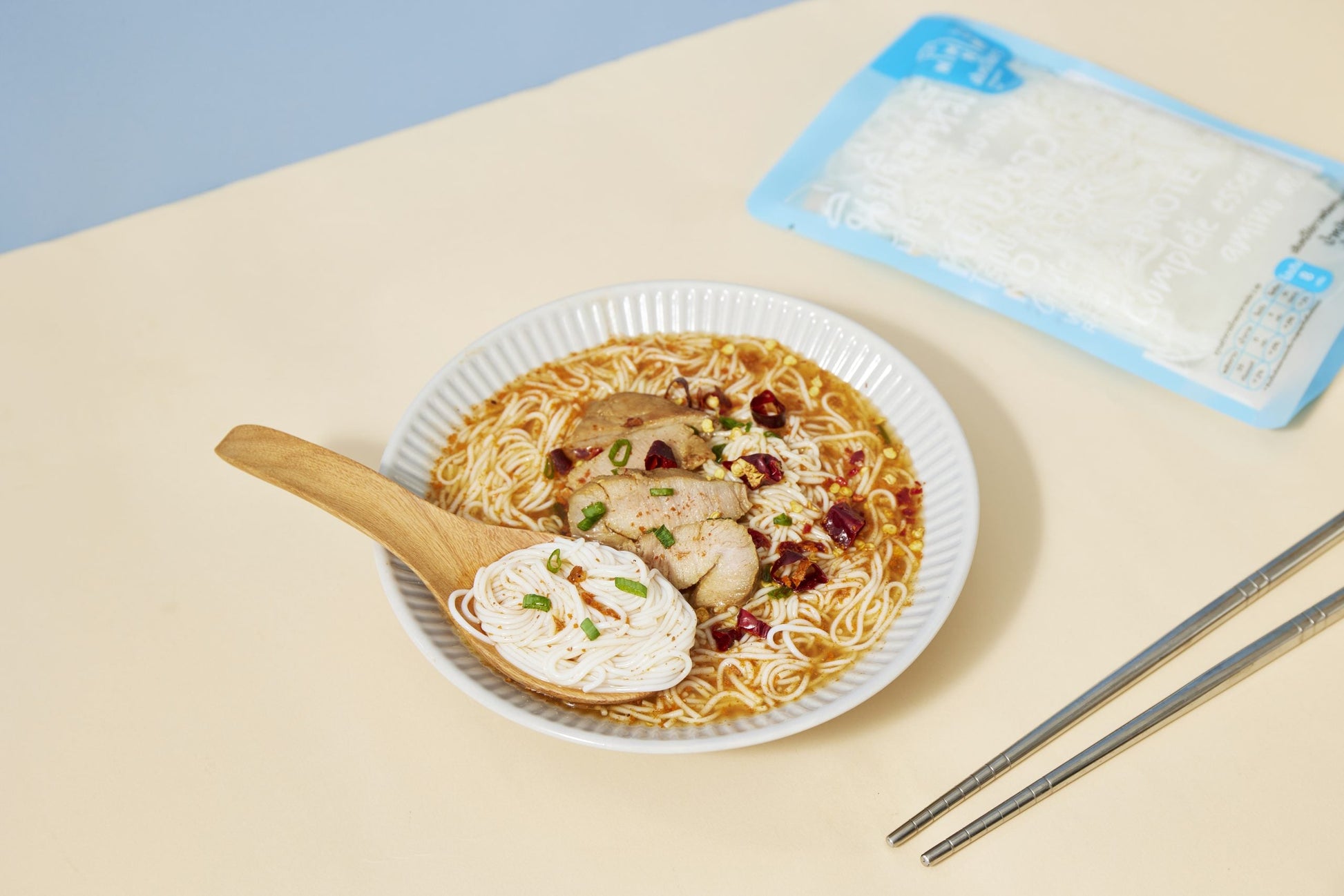 與蒟蒻麵相比,口感更軟淋,更接近真麵,能掛湯