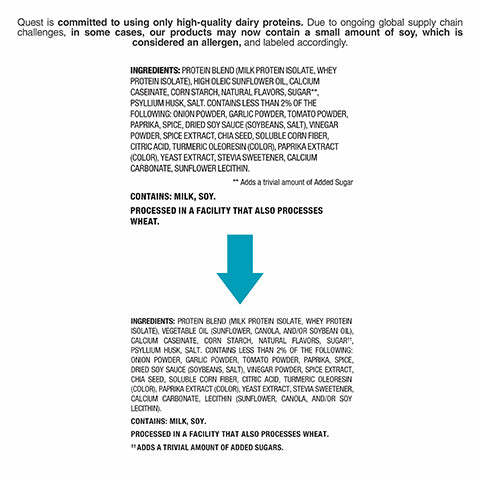 玉米餅蛋白質片每份中 18 克蛋白4 克淨碳水化合物*猶太潔食無麩質認可未添加大豆成分烘焙永不油炸Quest Nutrition 的使命是讓您渴望為您效力的食物不會對您不利。
