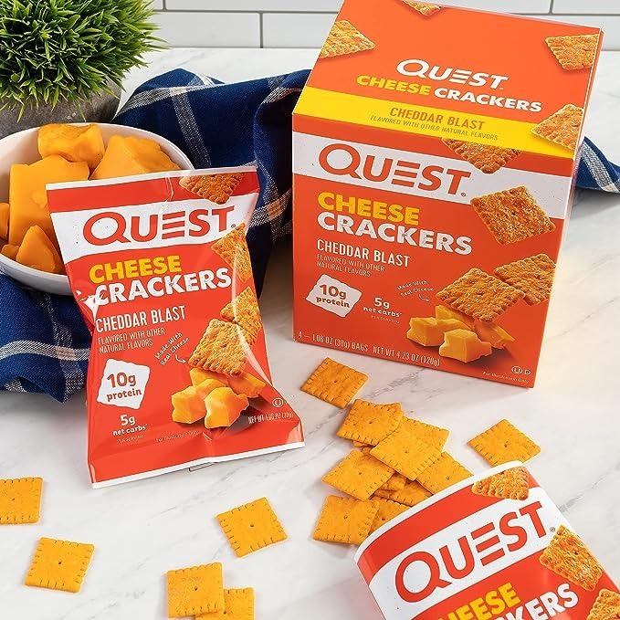 Quest™ 起司餅乾是最起司的零食方式,而且不會增加淨碳水化合物。 這些美味可口的蛋白質餅乾充滿了真正的起司風味,並具有您渴望的那種嘎吱聲。 試試含有 10 克蛋白質和 5 克淨碳水化合物的起司零食餅乾。 嚐一嘗,您就會同意:大營養*從未如此起司。